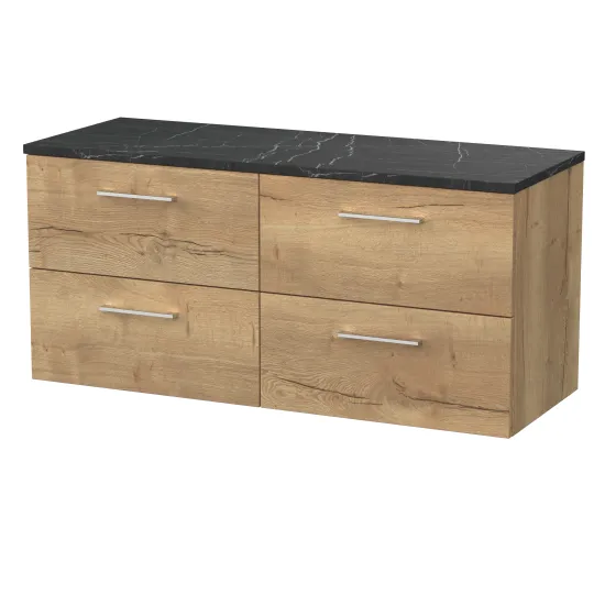 nuie Lux Kivo 600mm 2- Drawer Wall Hung Unit with a Laminate Worktop - Autumn Oak