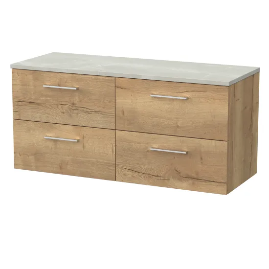 nuie Lux Kivo 600mm 2- Drawer Wall Hung Unit with a Laminate Worktop - Autumn Oak