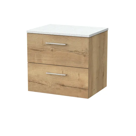 nuie Lux Kivo 600mm 2- Drawer Wall Hung Unit with a Laminate Worktop - Autumn Oak