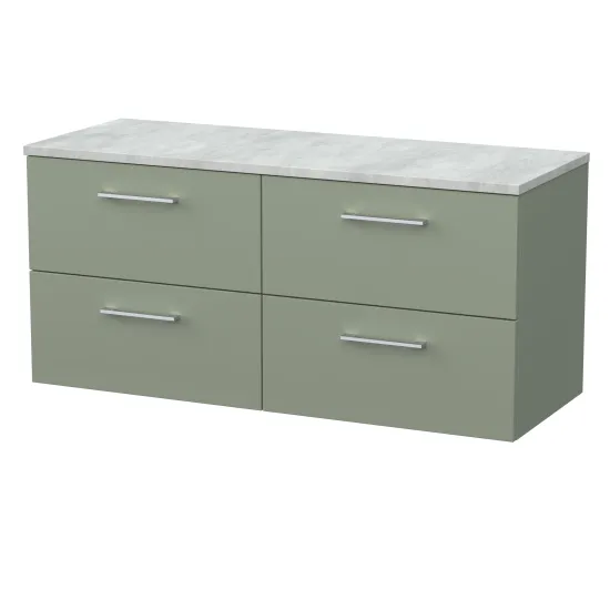 nuie Lux Kivo 600mm 2- Drawer Wall Hung Unit with a Laminate Worktop - Fern Green
