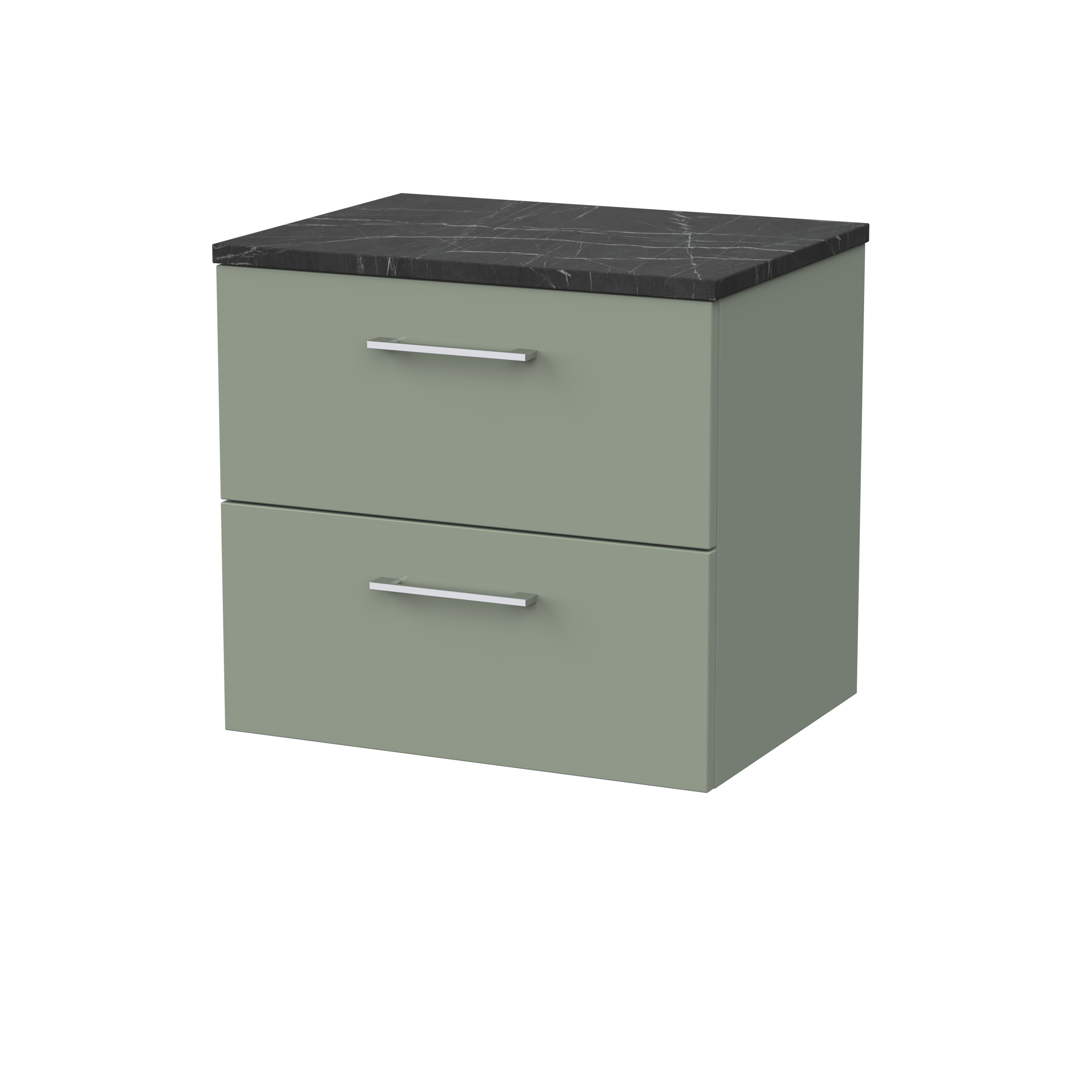 nuie Lux Kivo 600mm 2- Drawer Wall Hung Unit with a Laminate Worktop - Fern Green