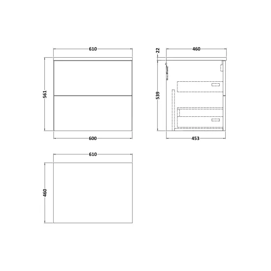 Kivo 600mm 2- Drawer Wall Hung Unit with a Laminate Worktop
