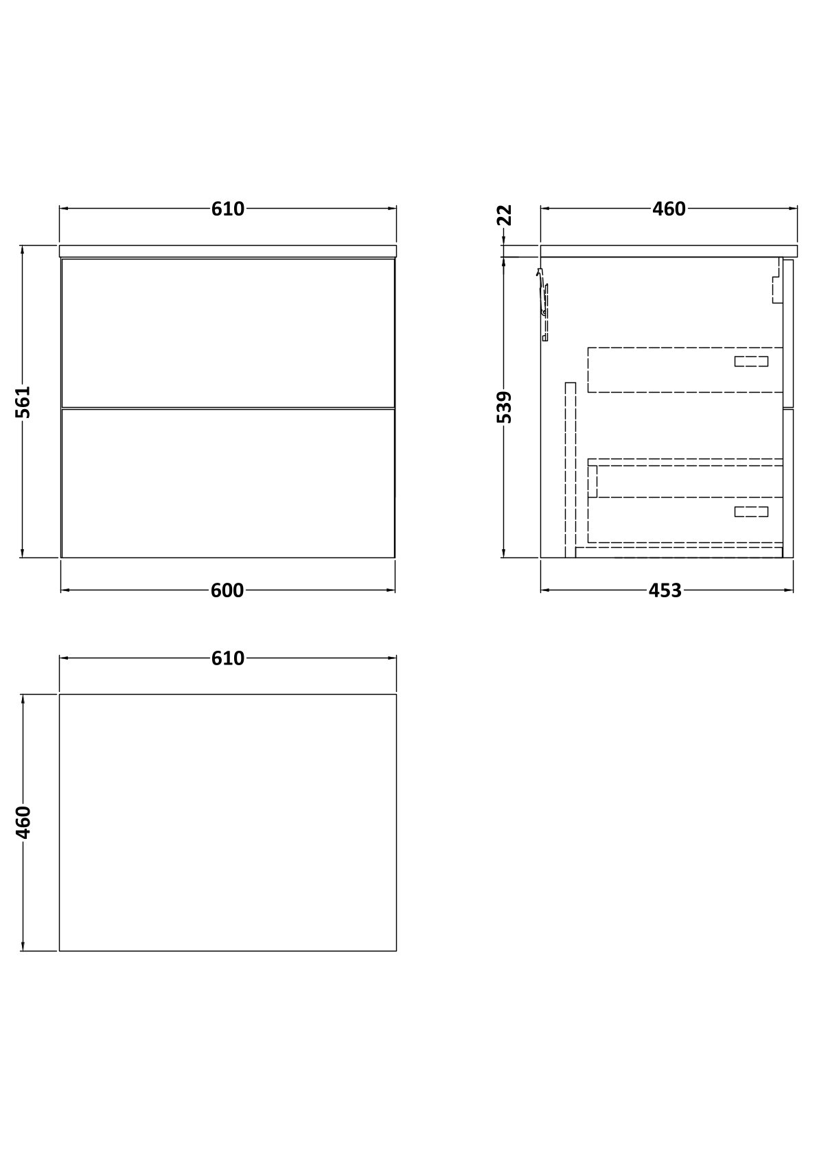 Kivo 600mm 2- Drawer Wall Hung Unit with a Laminate Worktop
