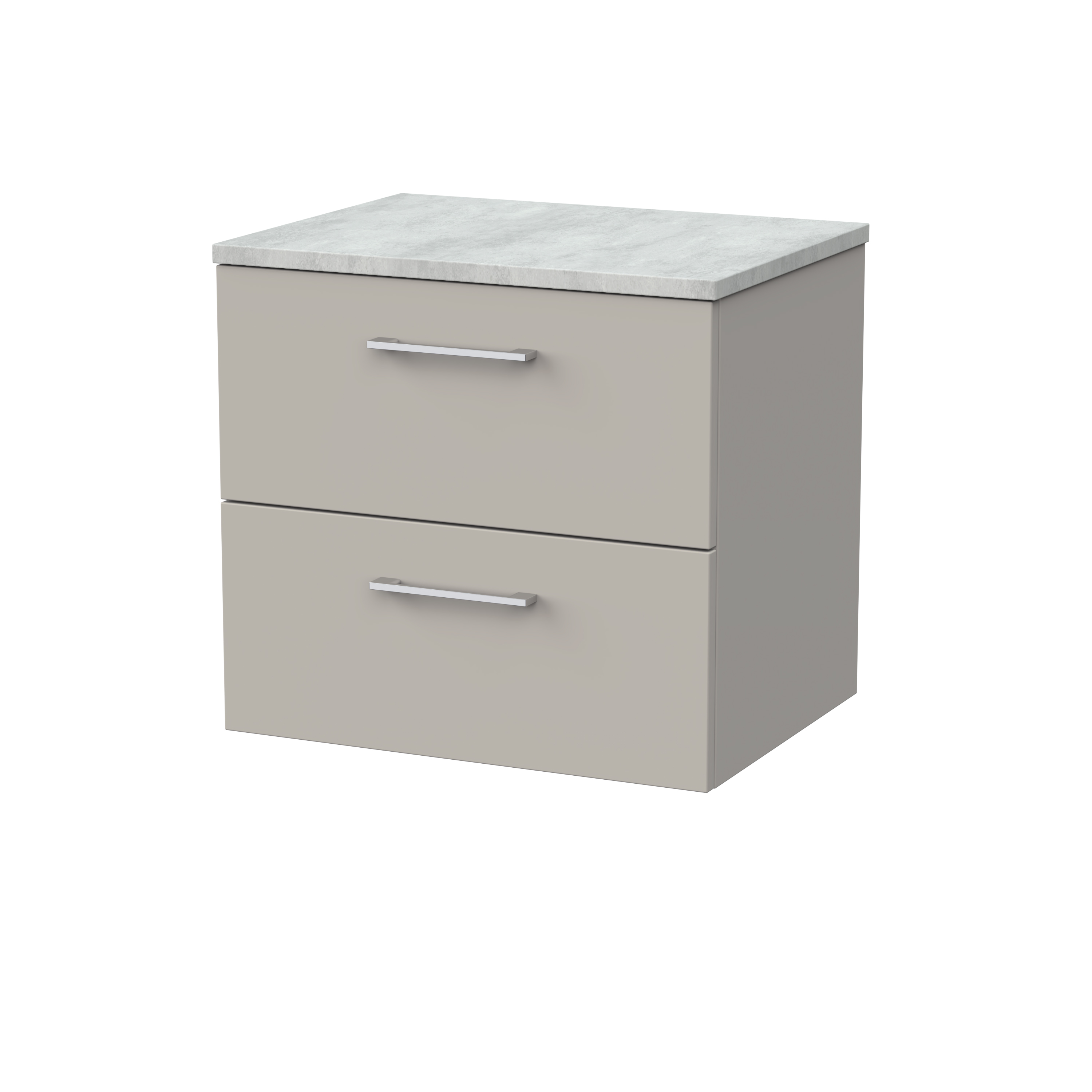 nuie Lux Kivo 600mm 2- Drawer Wall Hung Unit with a Laminate Worktop - Pebble Grey