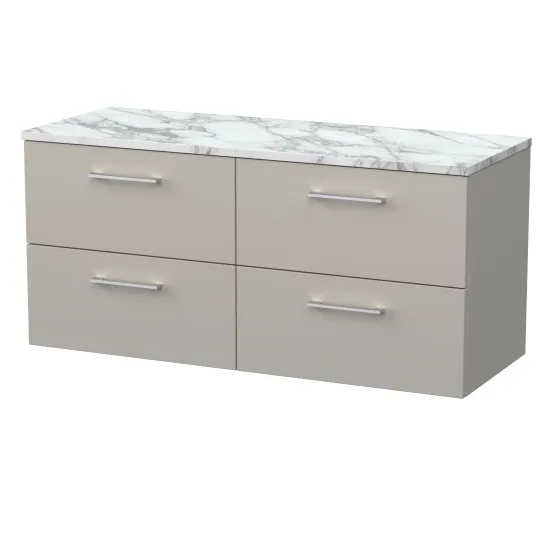 nuie Lux Kivo 600mm 2- Drawer Wall Hung Unit with a Laminate Worktop - Pebble Grey