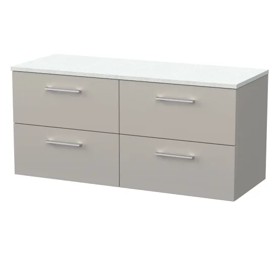 nuie Lux Kivo 600mm 2- Drawer Wall Hung Unit with a Laminate Worktop - Pebble Grey