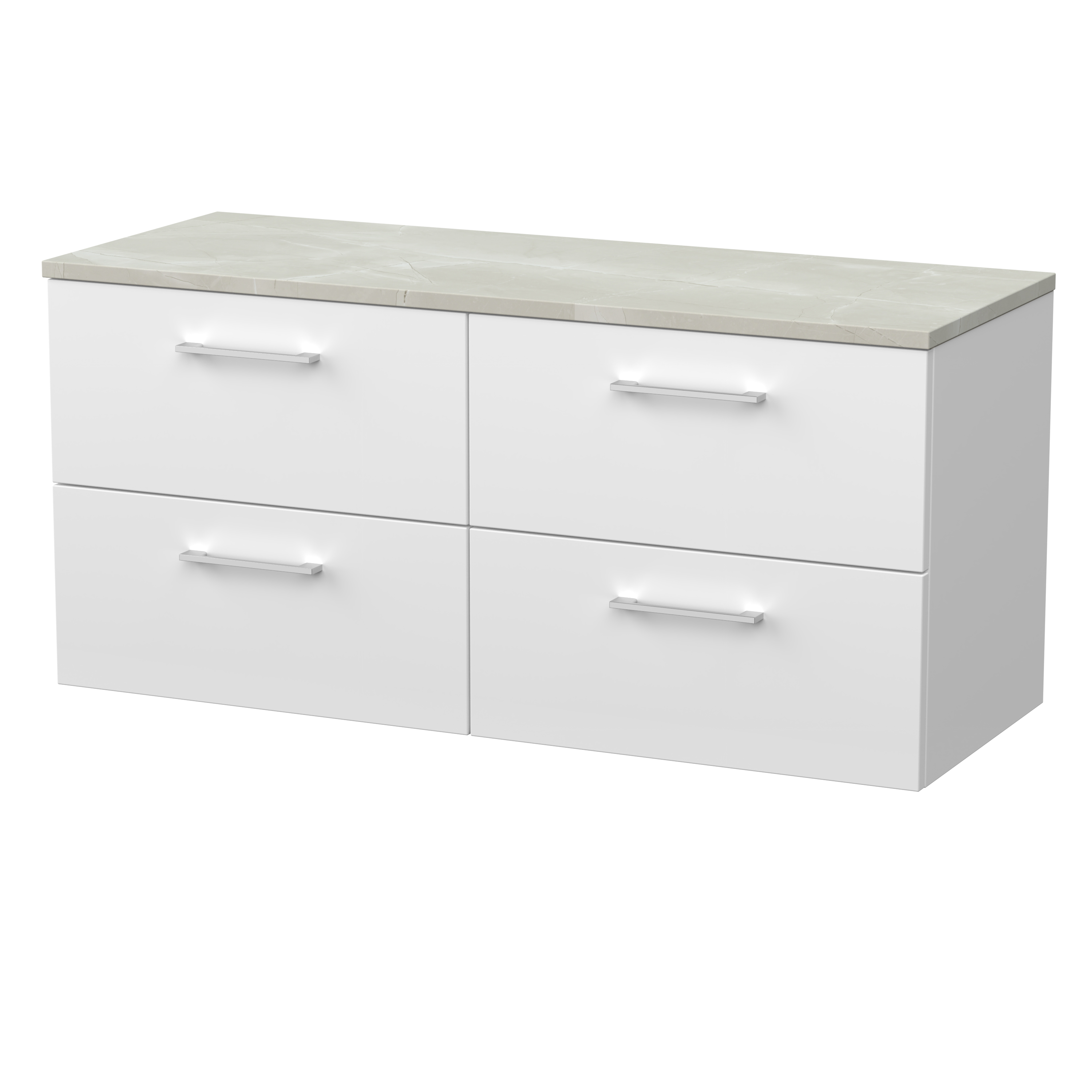 nuie Lux Kivo 600mm 2- Drawer Wall Hung Unit with a Laminate Worktop - Matt White