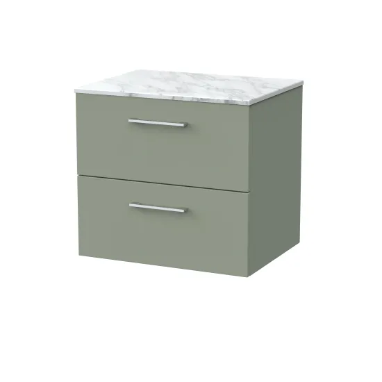 nuie Lux Kivo 600mm 2- Drawer Wall Hung Unit with a Marble Top in Carrera - Fern Green