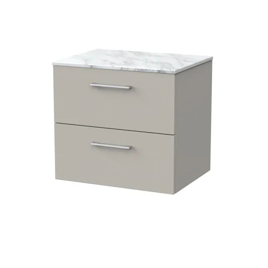 Kivo 600mm 2- Drawer Wall Hung Unit with a Marble Top in Carrera