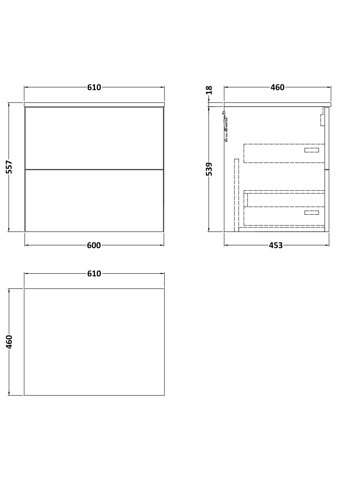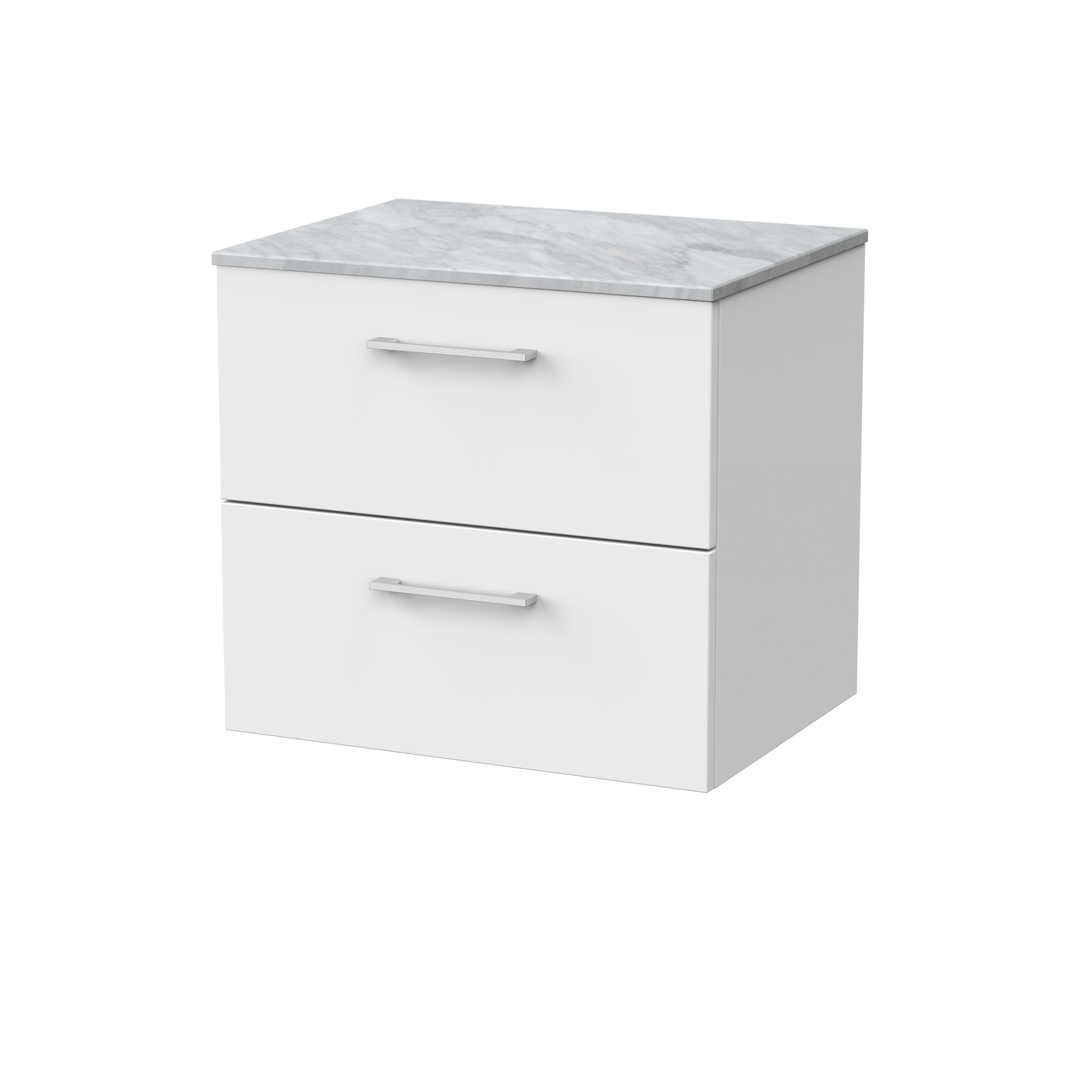 nuie Lux Kivo 600mm 2- Drawer Wall Hung Unit with a Marble Top in Grey - Matt White