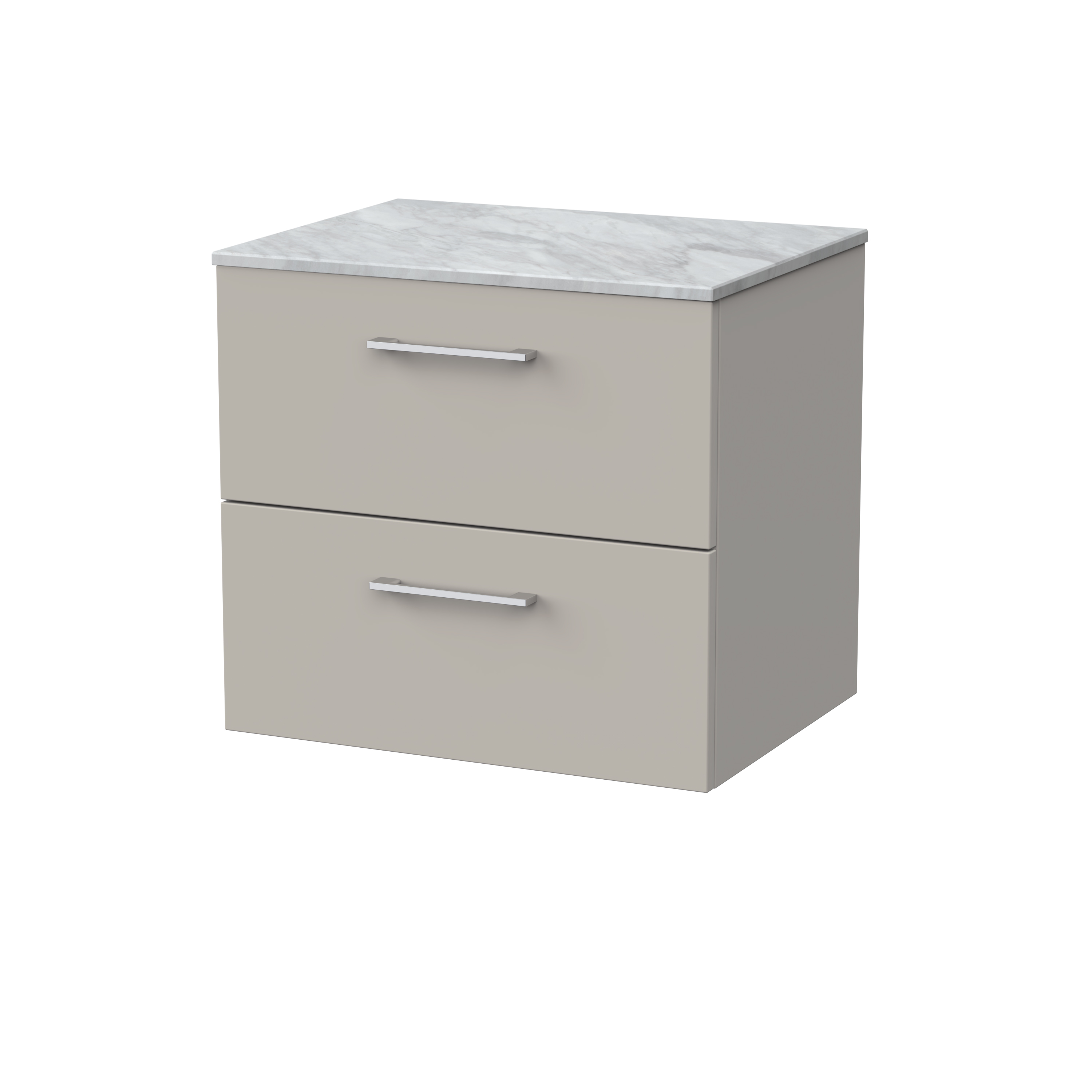 Kivo 600mm 2- Drawer Wall Hung Unit with a Marble Top in Grey