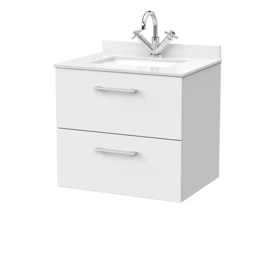 nuie Lux Kivo 600mm 2- Drawer Wall Hung Unit with a Single Bowl Marble Top 1 Tap Hole in White - Matt White
