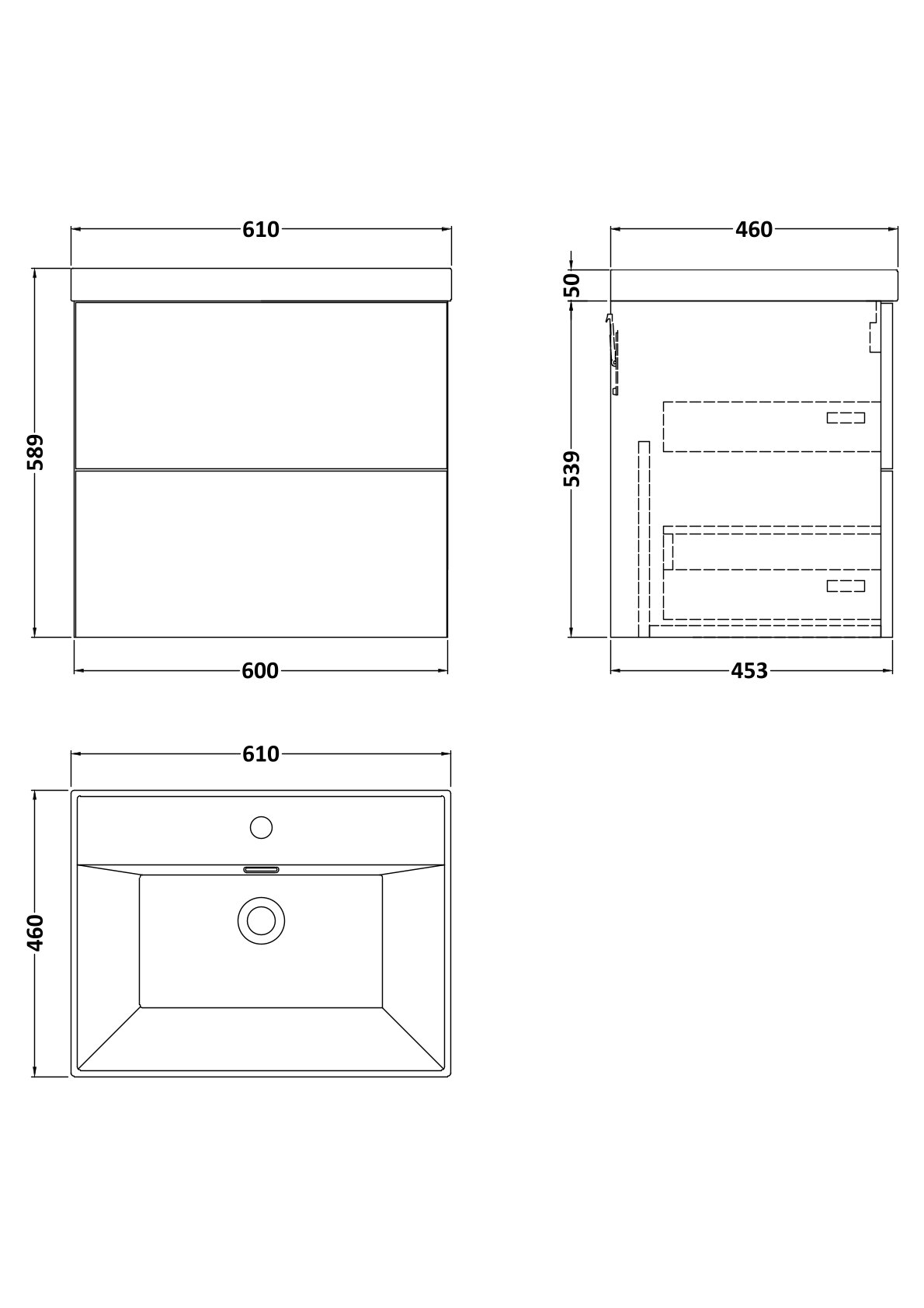 nuie Lux Kivo 600mm 2- Drawer Wall Hung Unit with a Thin-Edge Basin - 1 Tap Hole - Soft Black