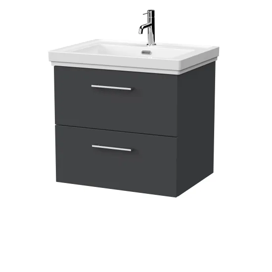 nuie Lux Kivo 600mm 2- Drawer Wall Hung Unit with a Traditional Fireclay Basin - 1 Tap Hole - Soft Black