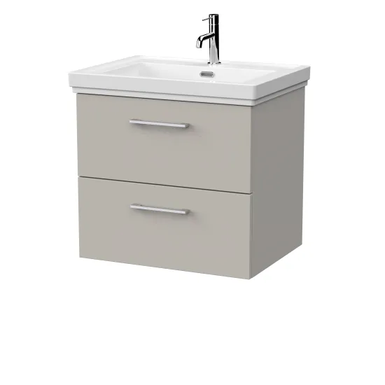 nuie Lux Kivo 600mm 2- Drawer Wall Hung Unit with a Traditional Fireclay Basin - 1 Tap Hole - Pebble Grey