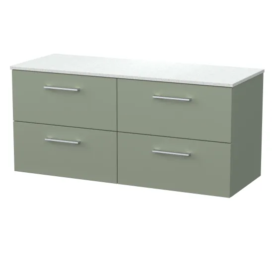 nuie Lux Kivo 600mm 2- Drawer Wall Hung Unit with a White Marble Top - Fern Green