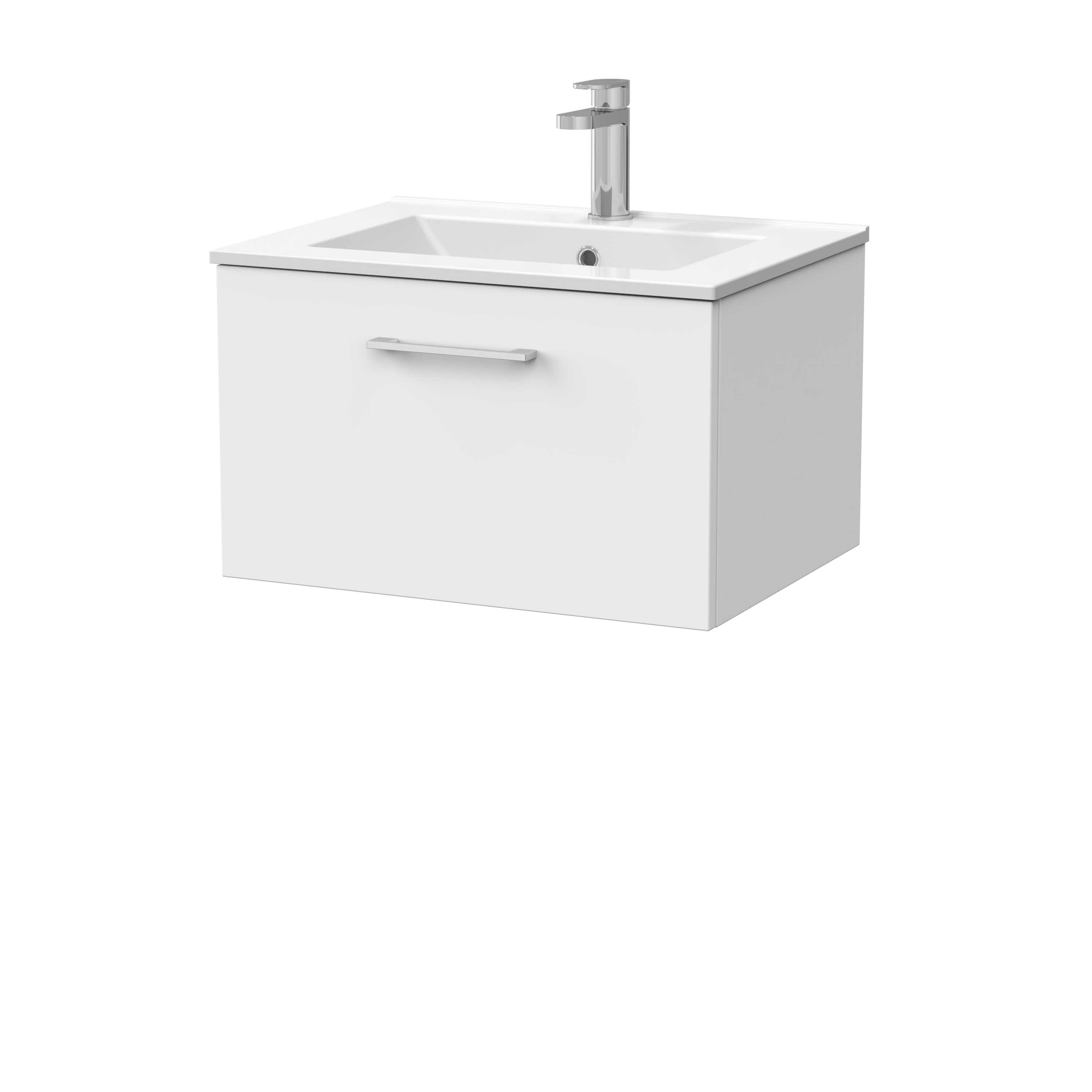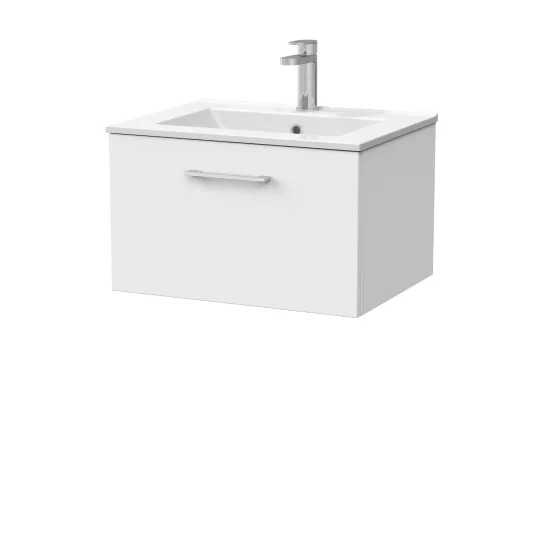 nuie Lux Kivo 600mm Single Drawer Wall Hung Unit with a 1 Tap Hole Minimalist Basin Top - Matt White