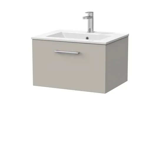 nuie Lux Kivo 600mm Single Drawer Wall Hung Unit with a 1 Tap Hole Minimalist Basin Top - Pebble Grey