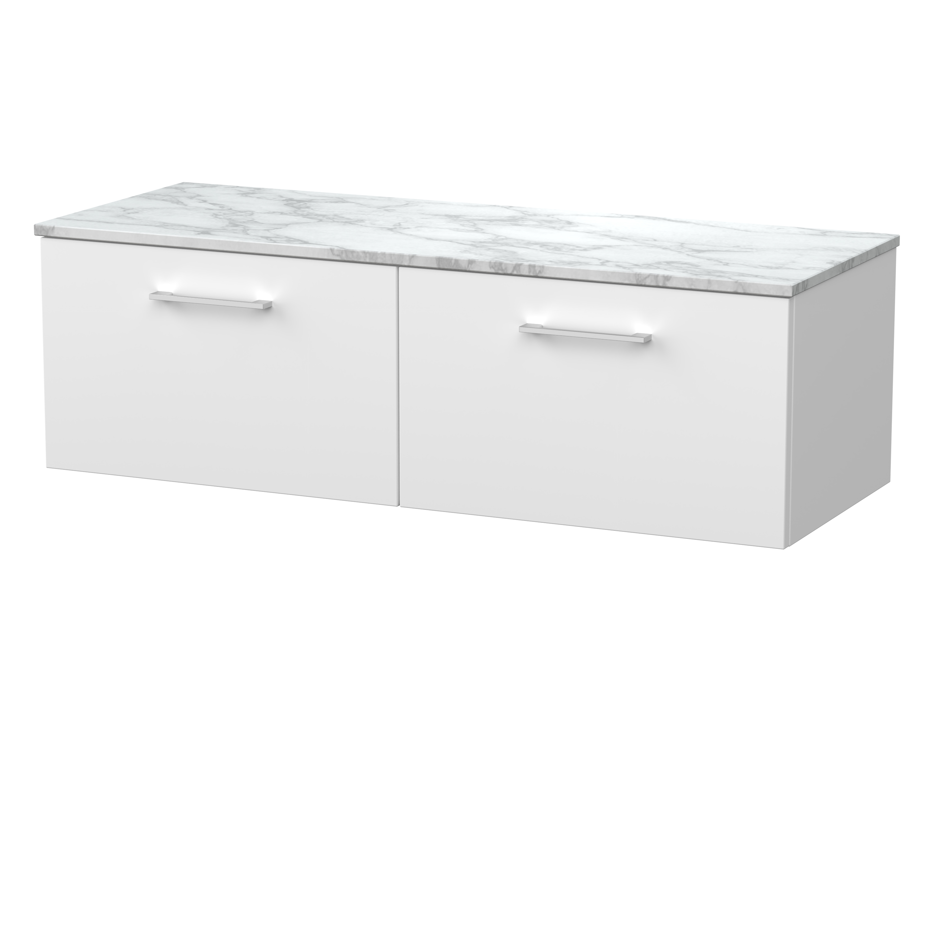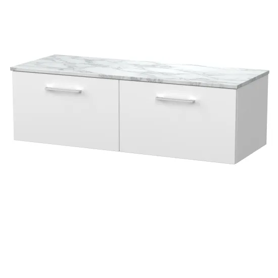 nuie Lux Kivo 600mm Single Drawer Wall Hung Unit with a Carrera Marble Top - Matt White