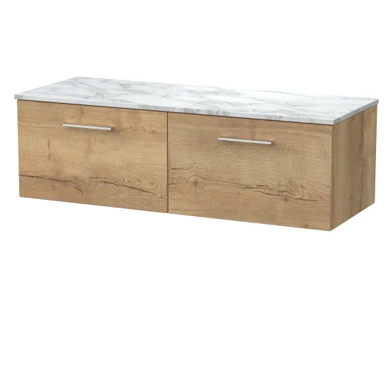 nuie Lux Kivo 600mm Single Drawer Wall Hung Unit with a Carrera Marble Top - Autumn Oak