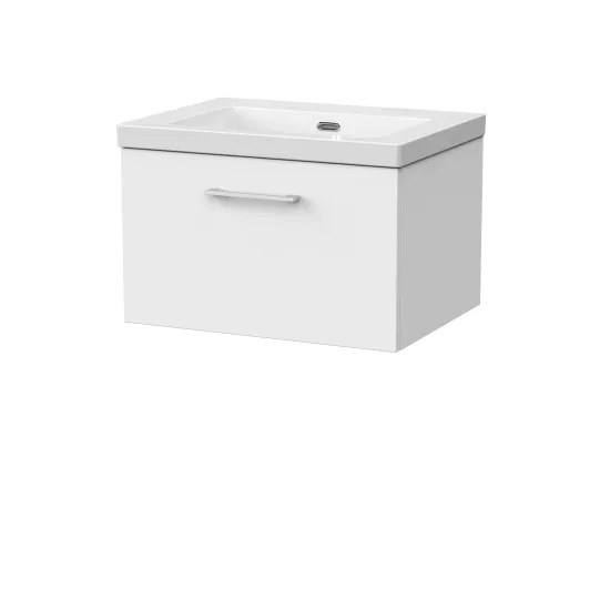 nuie Lux Kivo 600mm Single Drawer Wall Hung Unit with a Contemporary Basin - 0 Tap Holes - Matt White