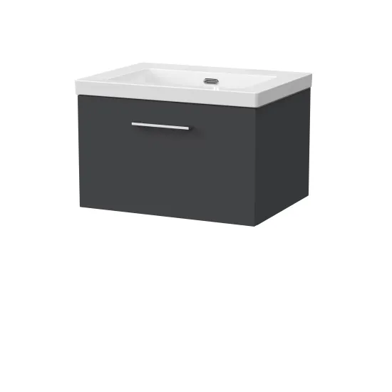 nuie Lux Kivo 600mm Single Drawer Wall Hung Unit with a Contemporary Basin - 0 Tap Holes - Soft Black