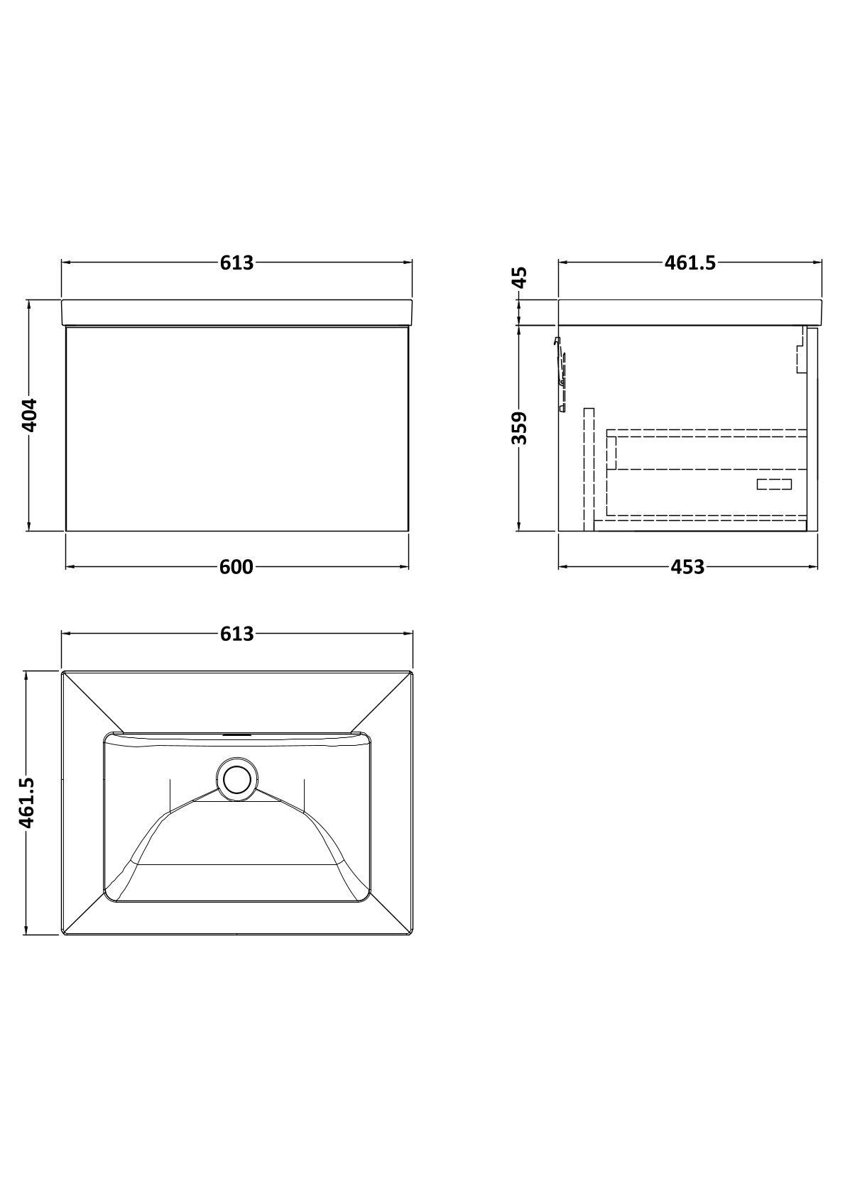 Kivo 600mm Single Drawer Wall Hung Unit with a Contemporary Basin - 0 Tap Holes