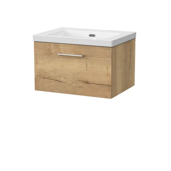 nuie Lux Kivo 600mm Single Drawer Wall Hung Unit with a Contemporary Basin - 0 Tap Holes - Autumn Oak