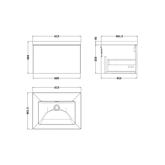 nuie Lux Kivo 600mm Single Drawer Wall Hung Unit with a Contemporary Basin - 0 Tap Holes - Pebble Grey