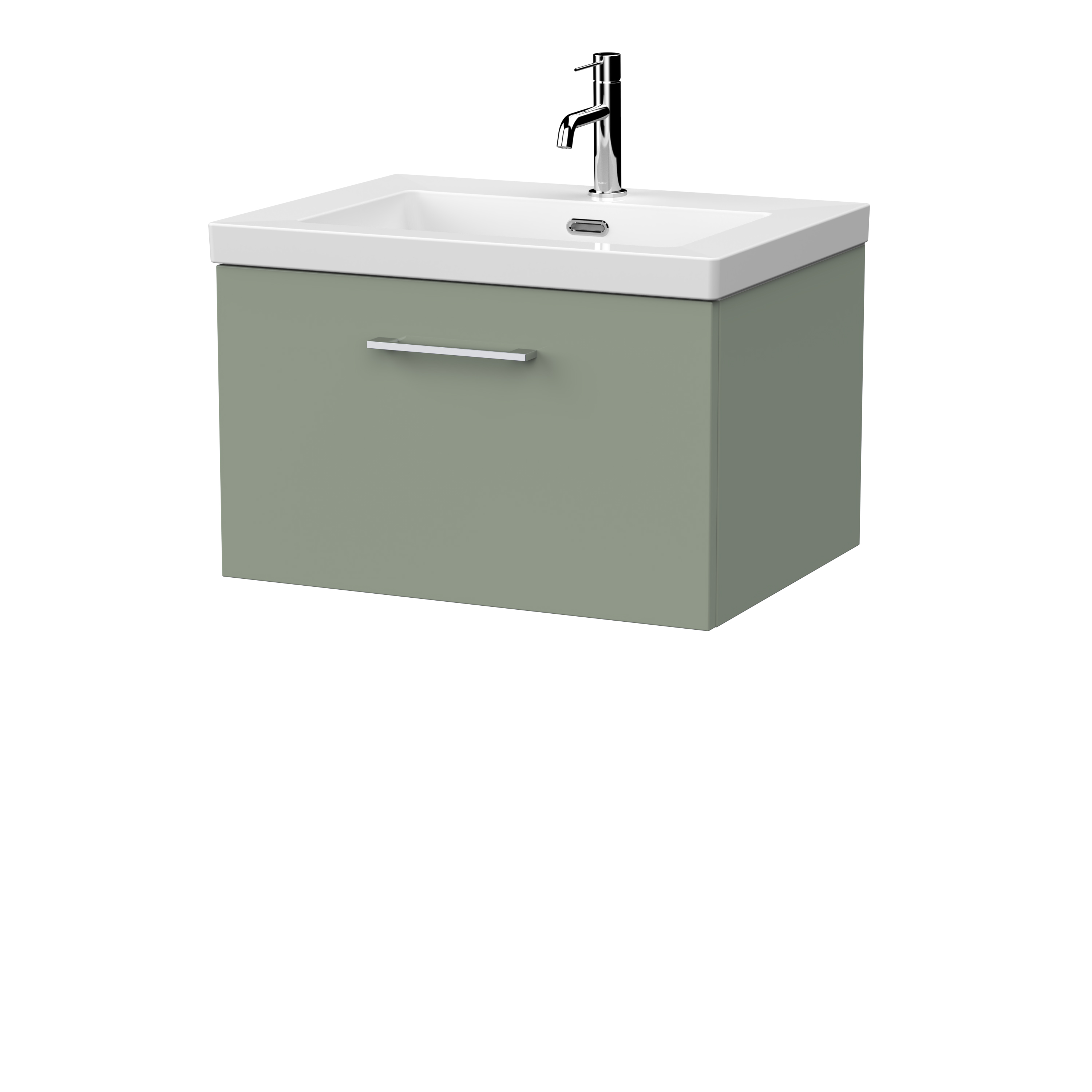 nuie Lux Kivo 600mm Single Drawer Wall Hung Unit with a Contemporary Basin - 1 Tap Hole - Fern Green