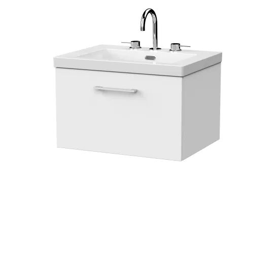 nuie Lux Kivo 600mm Single Drawer Wall Hung Unit with a Contemporary Basin - 3 Tap Holes - Matt White