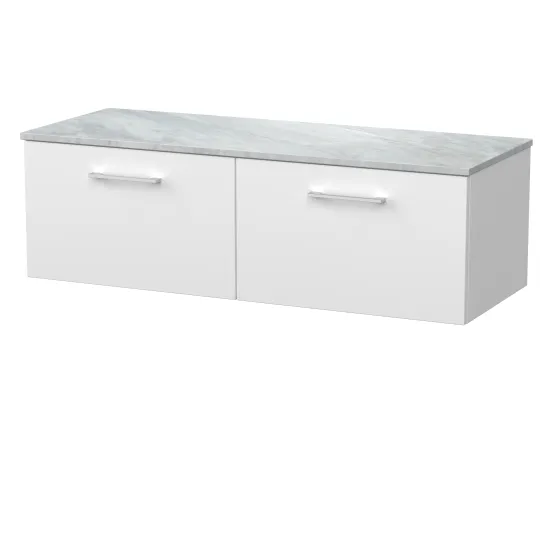 nuie Lux Kivo 600mm Single Drawer Wall Hung Unit with a Grey Marble Top - Matt White