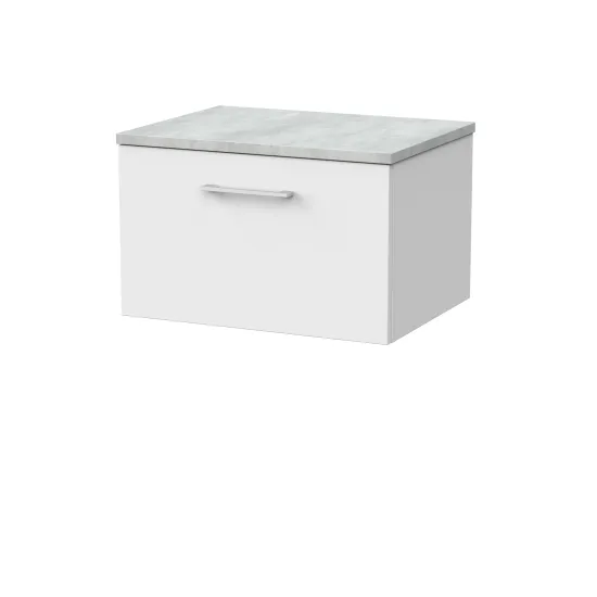 nuie Lux Kivo 600mm Single Drawer Wall Hung Unit with a Laminate Worktop - Matt White