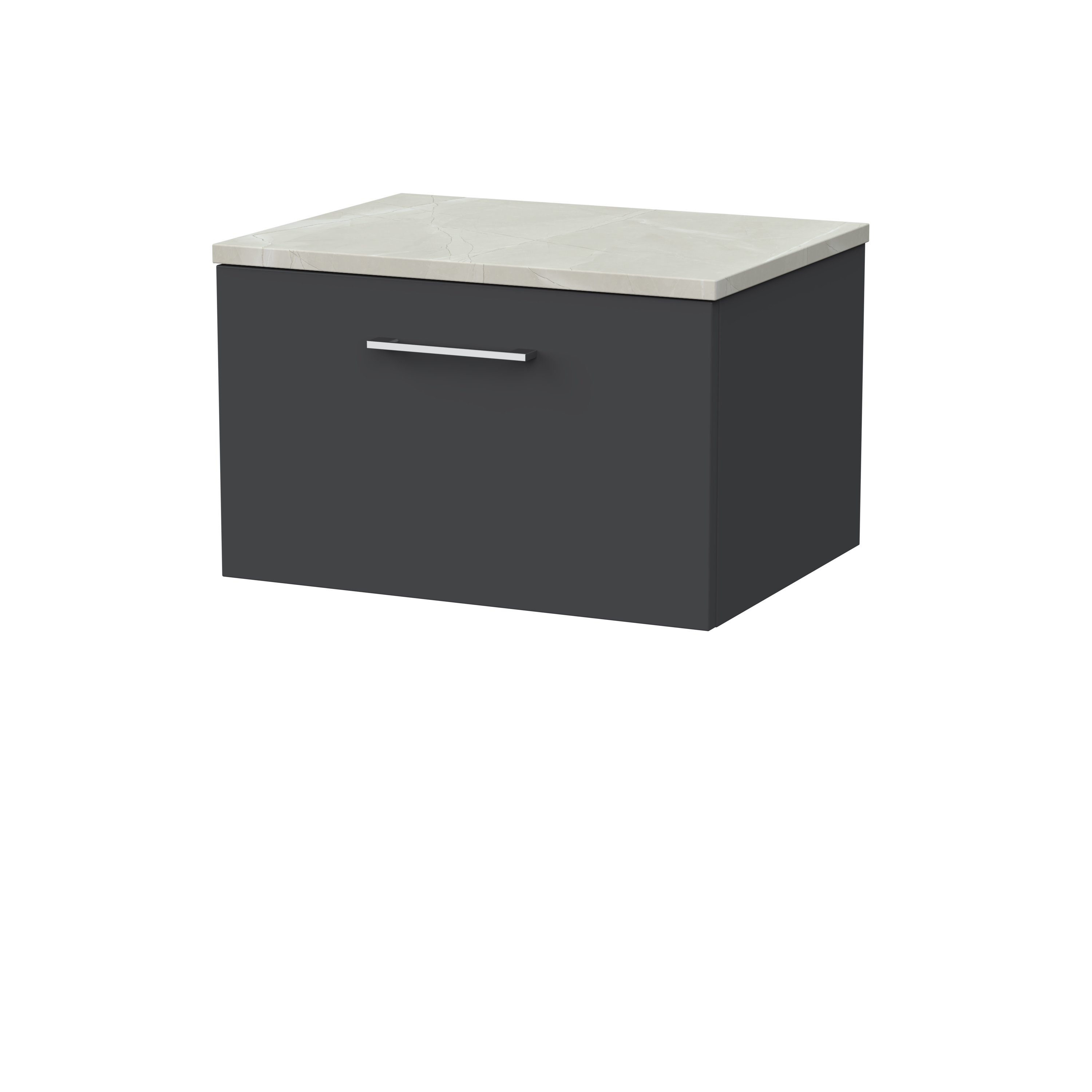 nuie Lux Kivo 600mm Single Drawer Wall Hung Unit with a Laminate Worktop - Soft Black
