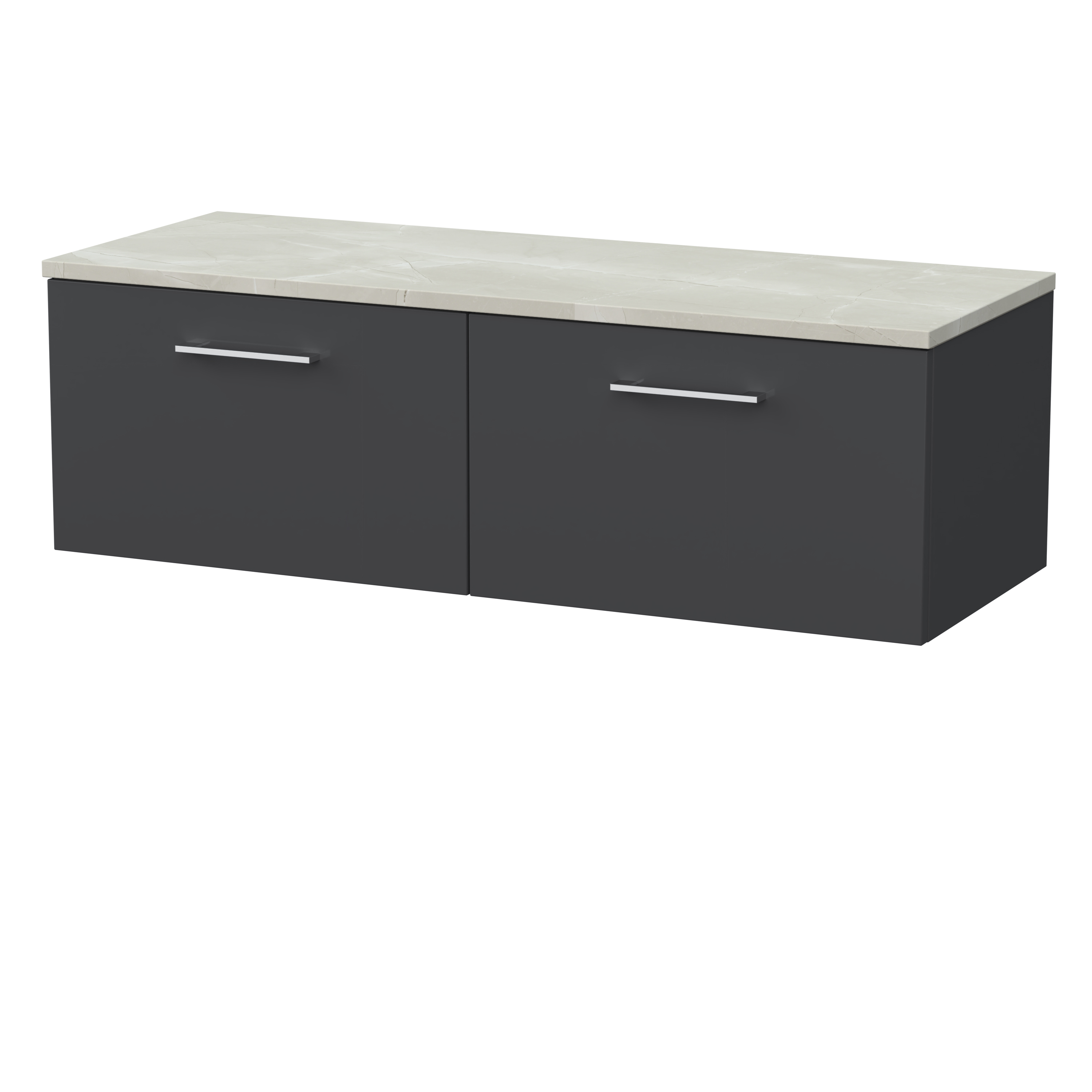 nuie Lux Kivo 600mm Single Drawer Wall Hung Unit with a Laminate Worktop - Soft Black