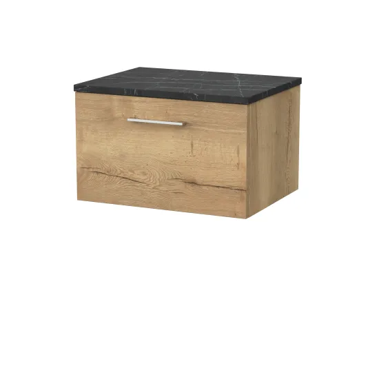 nuie Lux Kivo 600mm Single Drawer Wall Hung Unit with a Laminate Worktop - Autumn Oak
