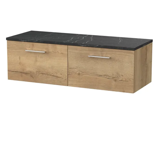 nuie Lux Kivo 600mm Single Drawer Wall Hung Unit with a Laminate Worktop - Autumn Oak