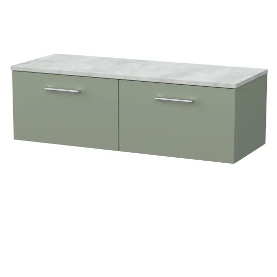 nuie Lux Kivo 600mm Single Drawer Wall Hung Unit with a Laminate Worktop - Fern Green