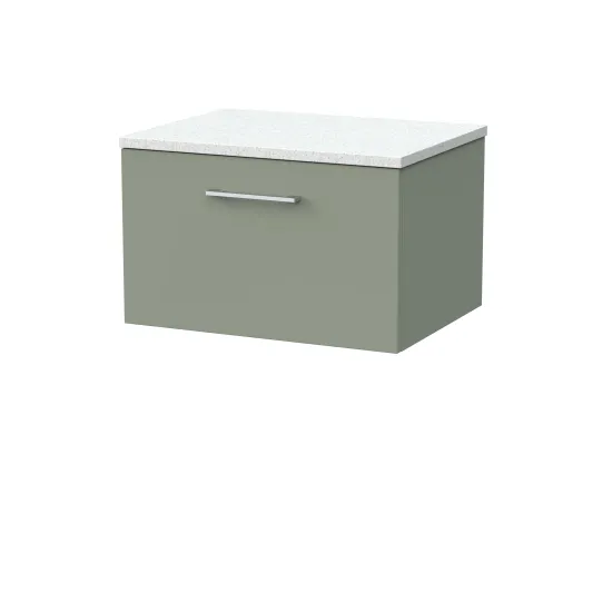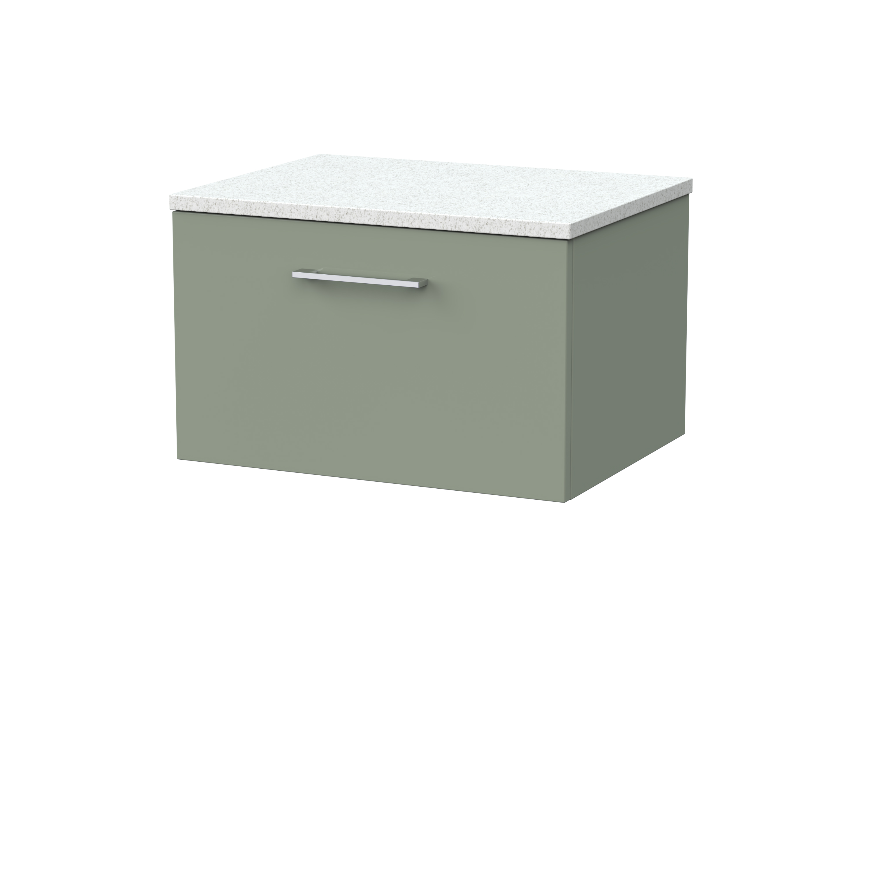 nuie Lux Kivo 600mm Single Drawer Wall Hung Unit with a Laminate Worktop - Fern Green