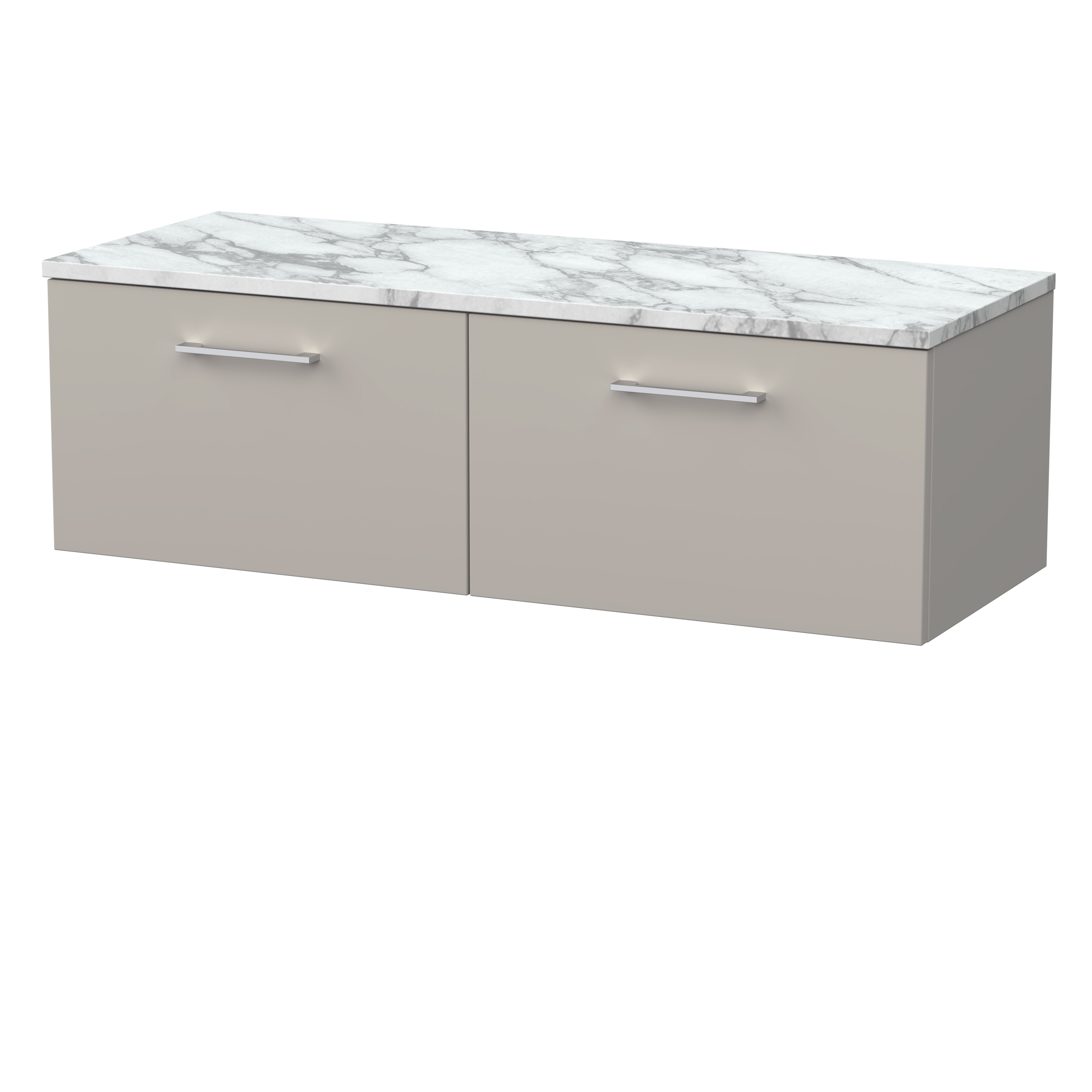 nuie Lux Kivo 600mm Single Drawer Wall Hung Unit with a Laminate Worktop - Pebble Grey