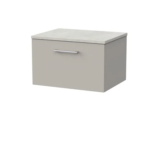 nuie Lux Kivo 600mm Single Drawer Wall Hung Unit with a Laminate Worktop - Pebble Grey