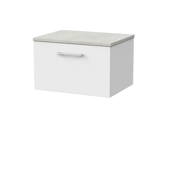 nuie Lux Kivo 600mm Single Drawer Wall Hung Unit with a Laminate Worktop - Matt White