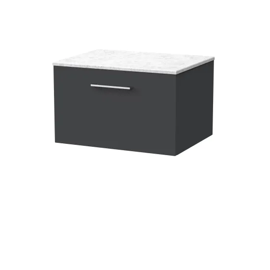 nuie Lux Kivo 600mm Single Drawer Wall Hung Unit with a Marble Top in White - Soft Black