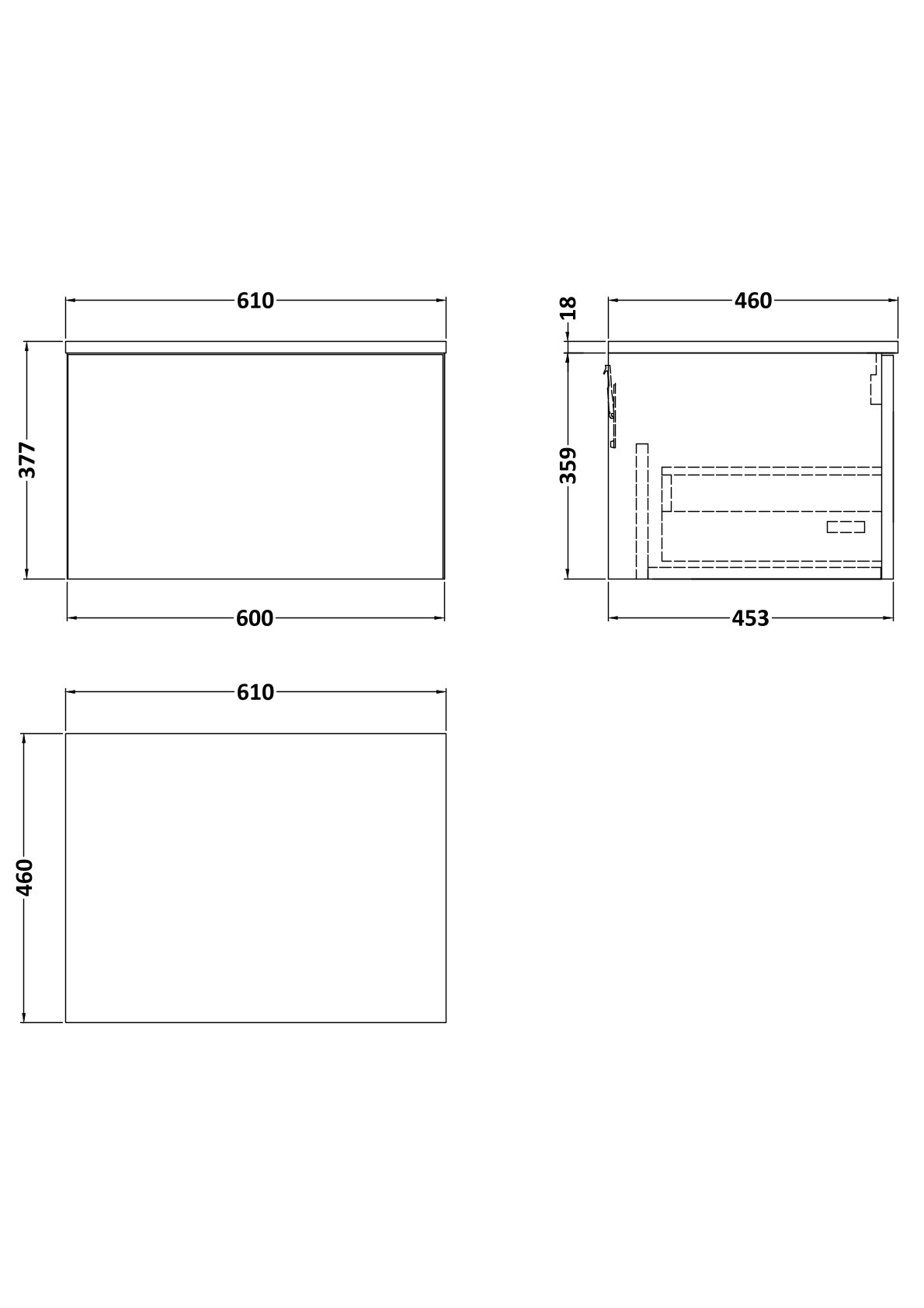 nuie Lux Kivo 600mm Single Drawer Wall Hung Unit with a Marble Top in White - Autumn Oak