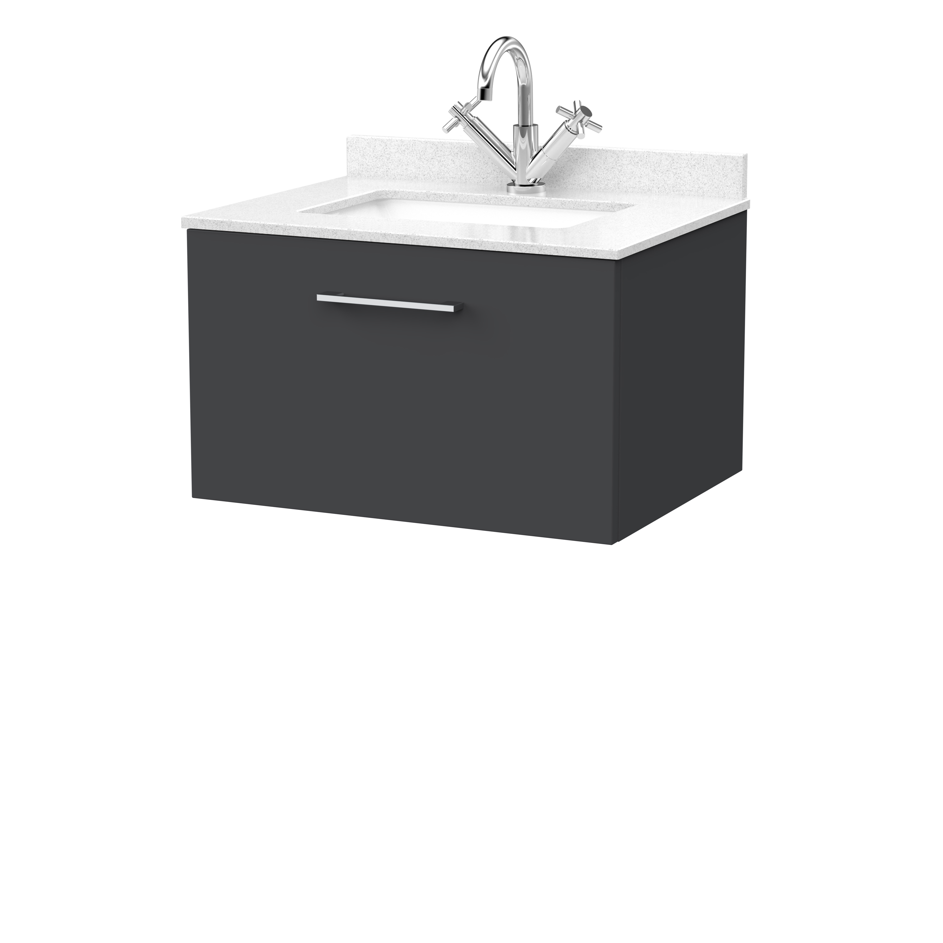 nuie Lux Kivo 600mm Single Drawer Wall Hung Unit with a Single Bowl Marble Top 1 Tap Hole in White - Soft Black