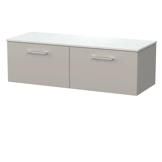 nuie Lux Kivo 600mm Single Drawer Wall Hung Unit with a White Marble Top - Pebble Grey