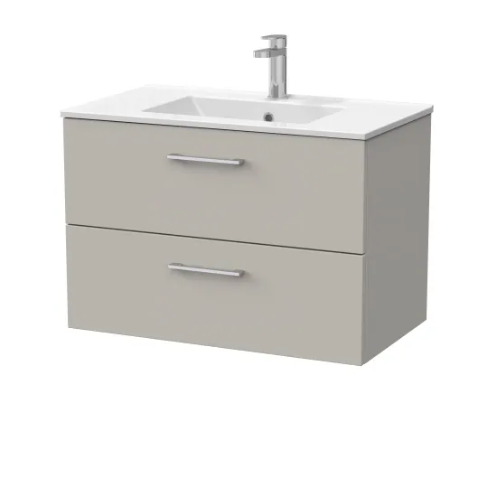nuie Lux Kivo 800mm 2- Drawer Wall Hung Unit with a 1 Tap Hole Minimalist Basin Top - Pebble Grey