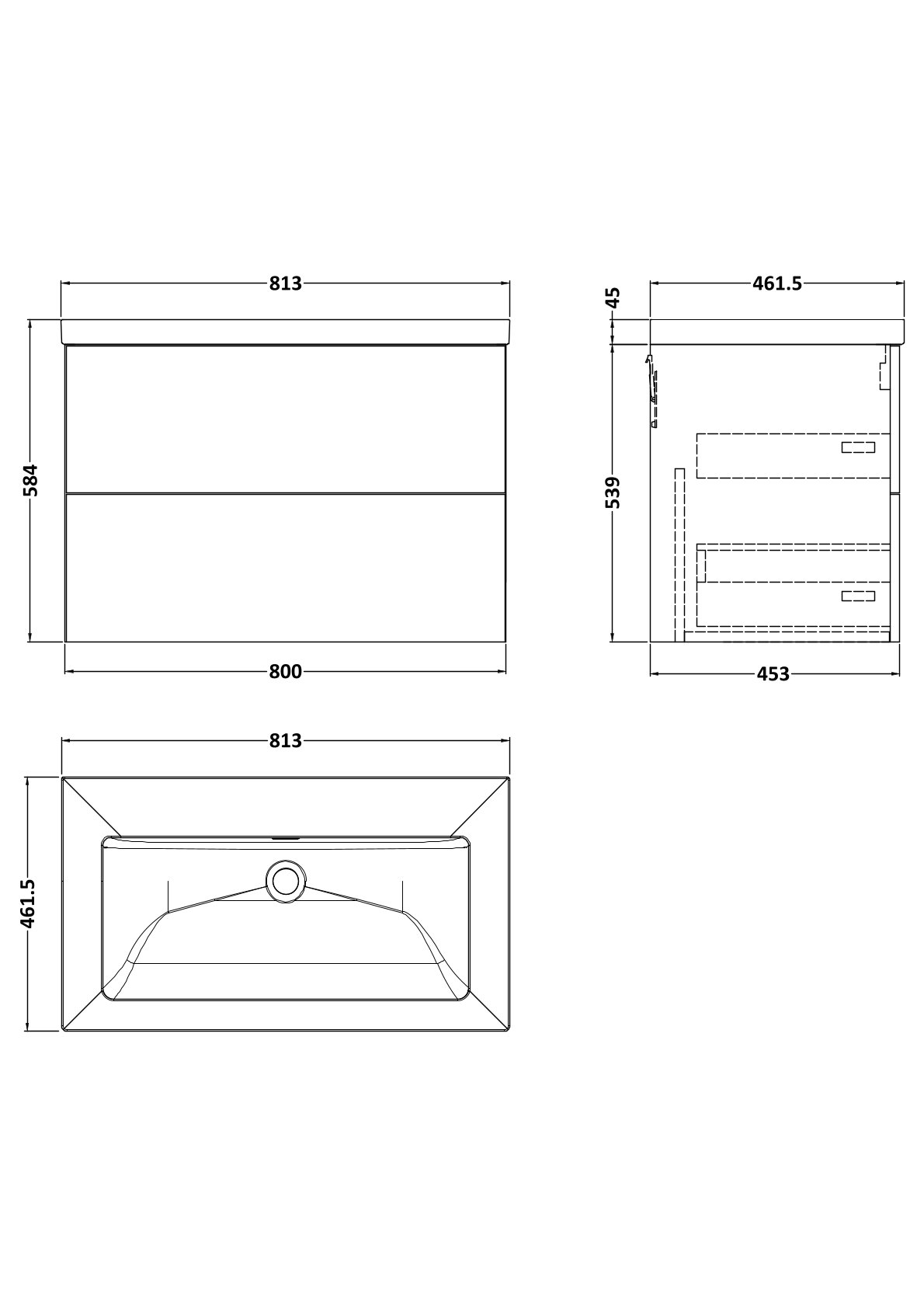 Kivo 800mm 2- Drawer Wall Hung Unit with a Contemporary Basin - 0 Tap Holes