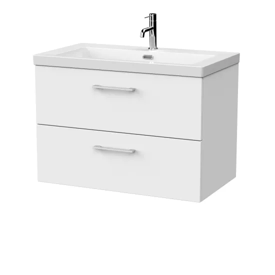 nuie Lux Kivo 800mm 2- Drawer Wall Hung Unit with a Contemporary Basin - 1 Tap Hole - Matt White