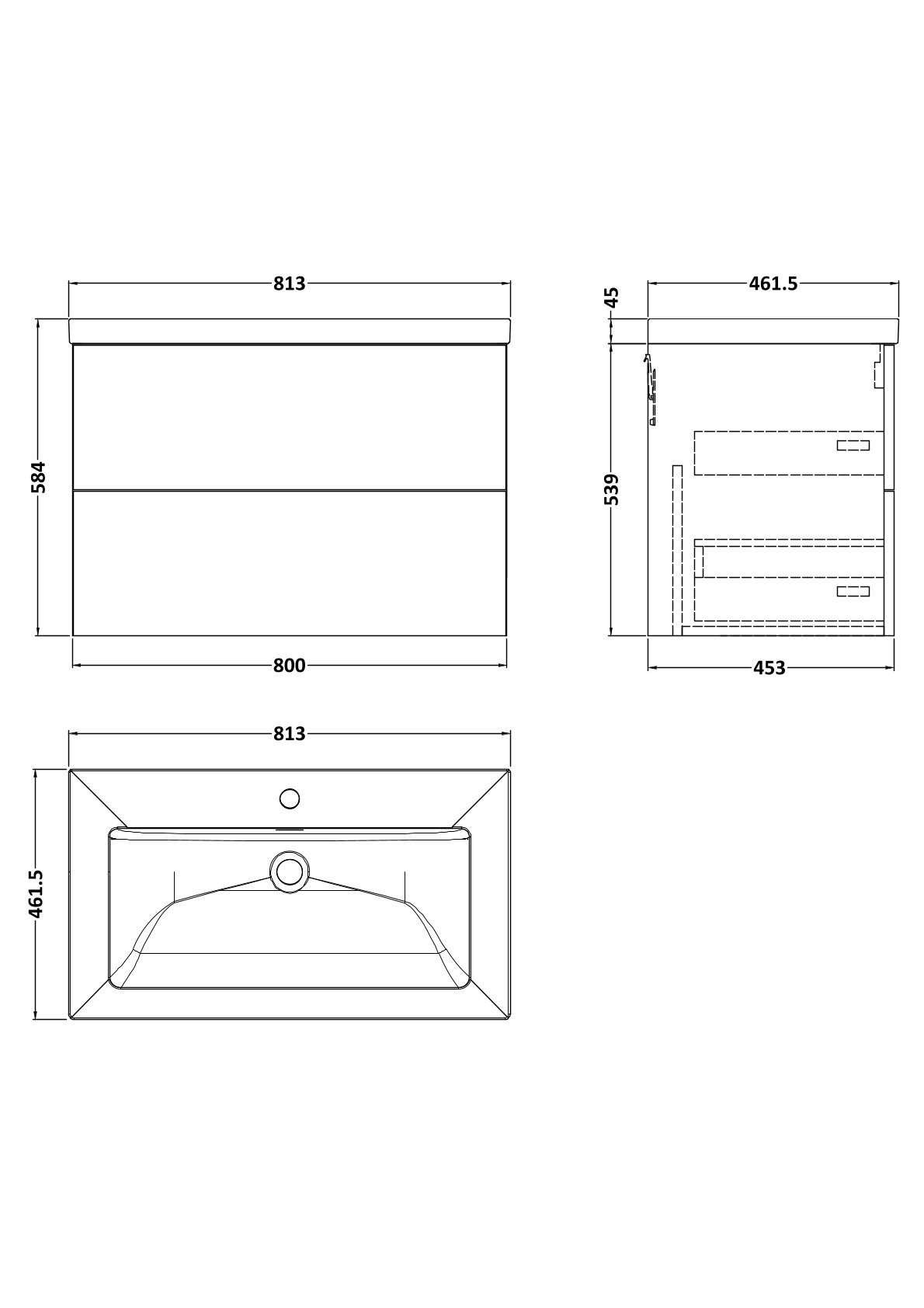 Kivo 800mm 2- Drawer Wall Hung Unit with a Contemporary Basin - 1 Tap Hole